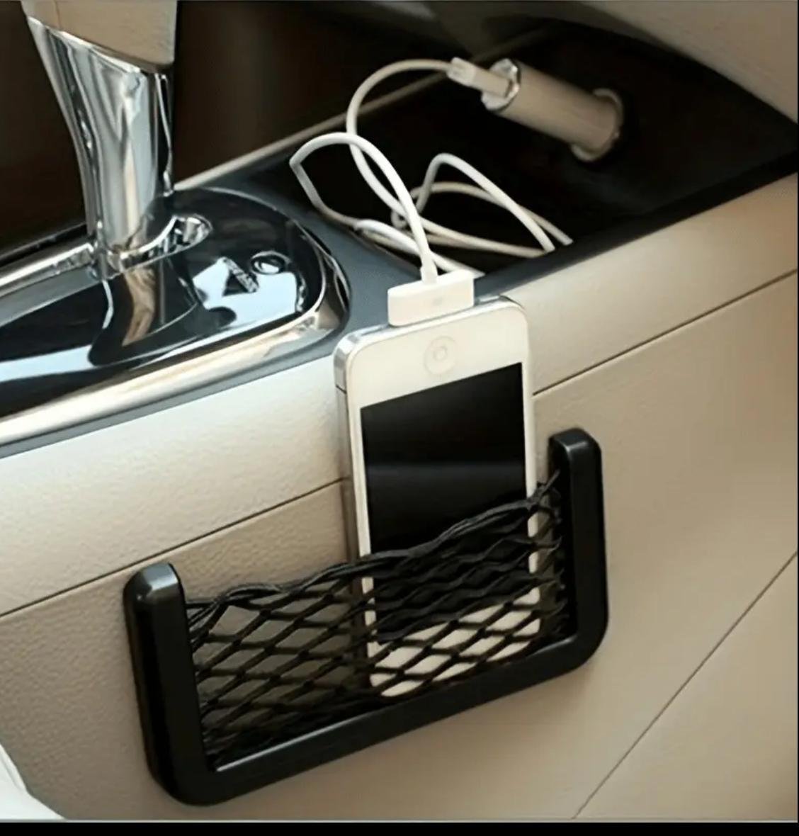 حقيبة شبكية لتخزين السيارة قابلة للتعديل – بلون أسود أنيق، سهلة التركيب للهواتف والبطاقات