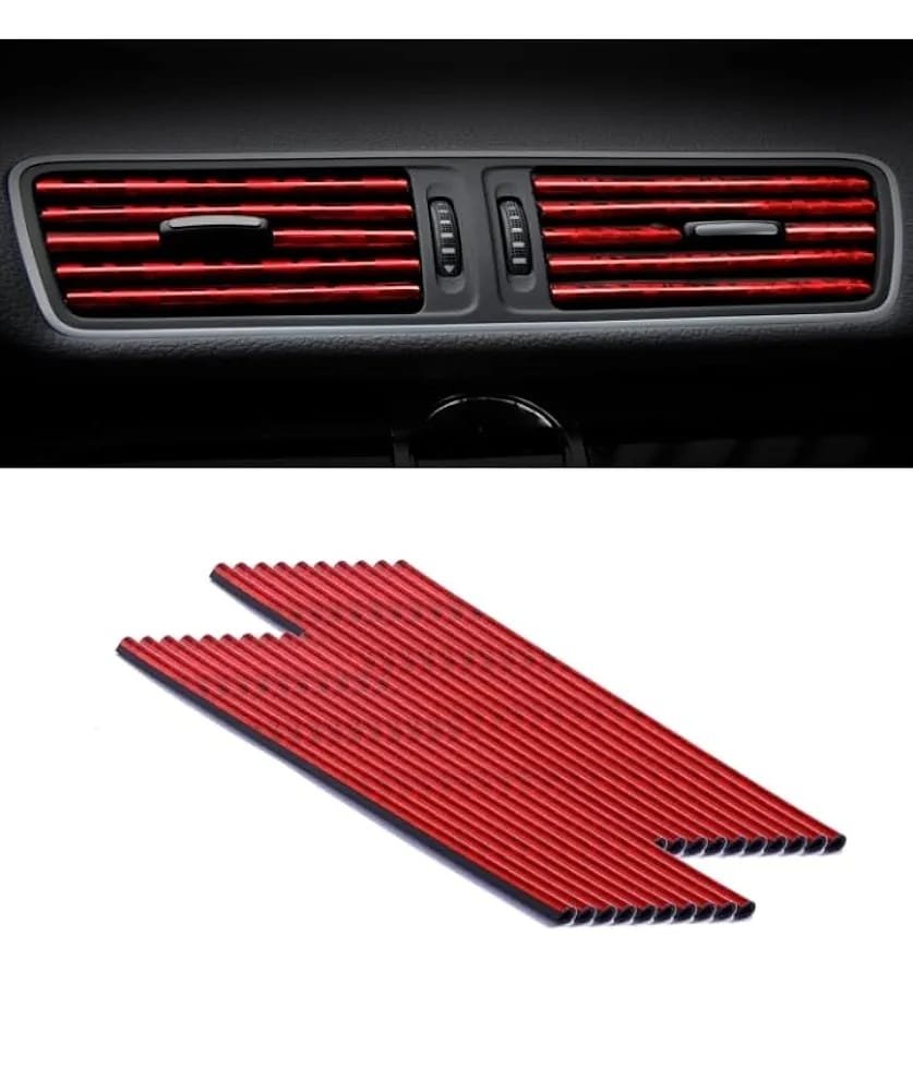 شريط تزيين فتحة مكيف هواء السيارة من بلاستيك بي في سي لجميع فتحات التهوية بشكل مستقيم – مقاس 20 سم – 10 قطع (أحمر)