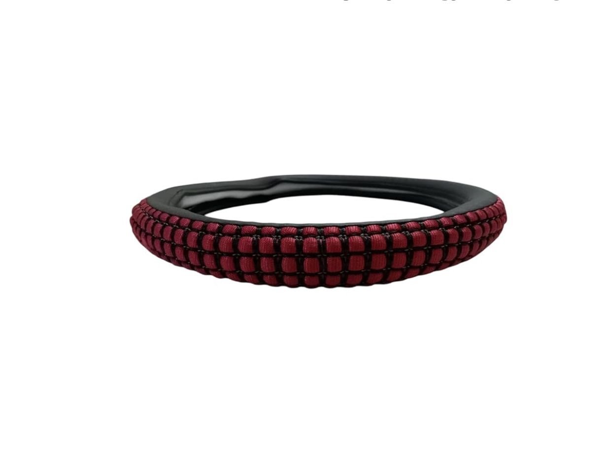 غطاء عجلة قيادة من نسيج الألياف قبضة قابلة للتنفس ومضادة للانزلاق، للصيف راحة مريحة للاستخدام إكسسوار داخلي متين للسياره15 بوصة شكل الطاره الدائرى (احمر )