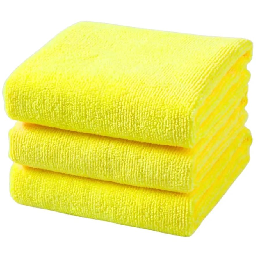 فوط تنظيف فاخرة من المايكروفايبر (عبوة من 3 قطع)، مقاس 40 × 40 سم، فوط تنظيف عالية الامتصاص، خالية من الوبر، قابلة لإعادة الاستخدام والغسل، فوط من المايكروفايبر للسيارات والمنزل والزجاج والجيم (أصفر