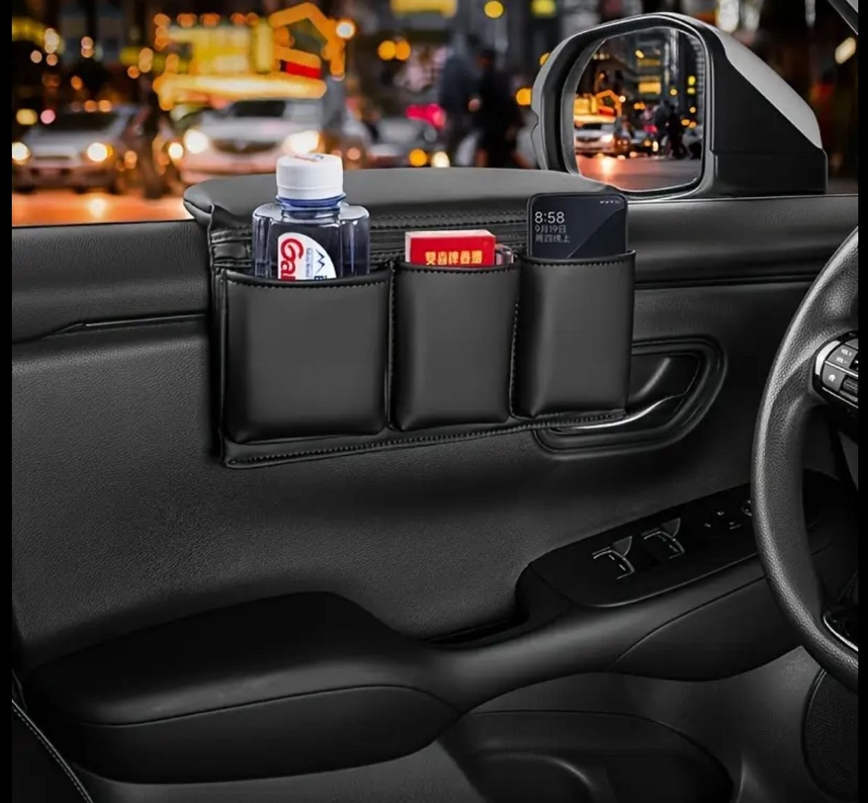 قطعة منظم نافذة السيارة من الجلد الصناعي بسعة كبيرة – حقيبة تنظيم السيارة متعددة الوظائف
