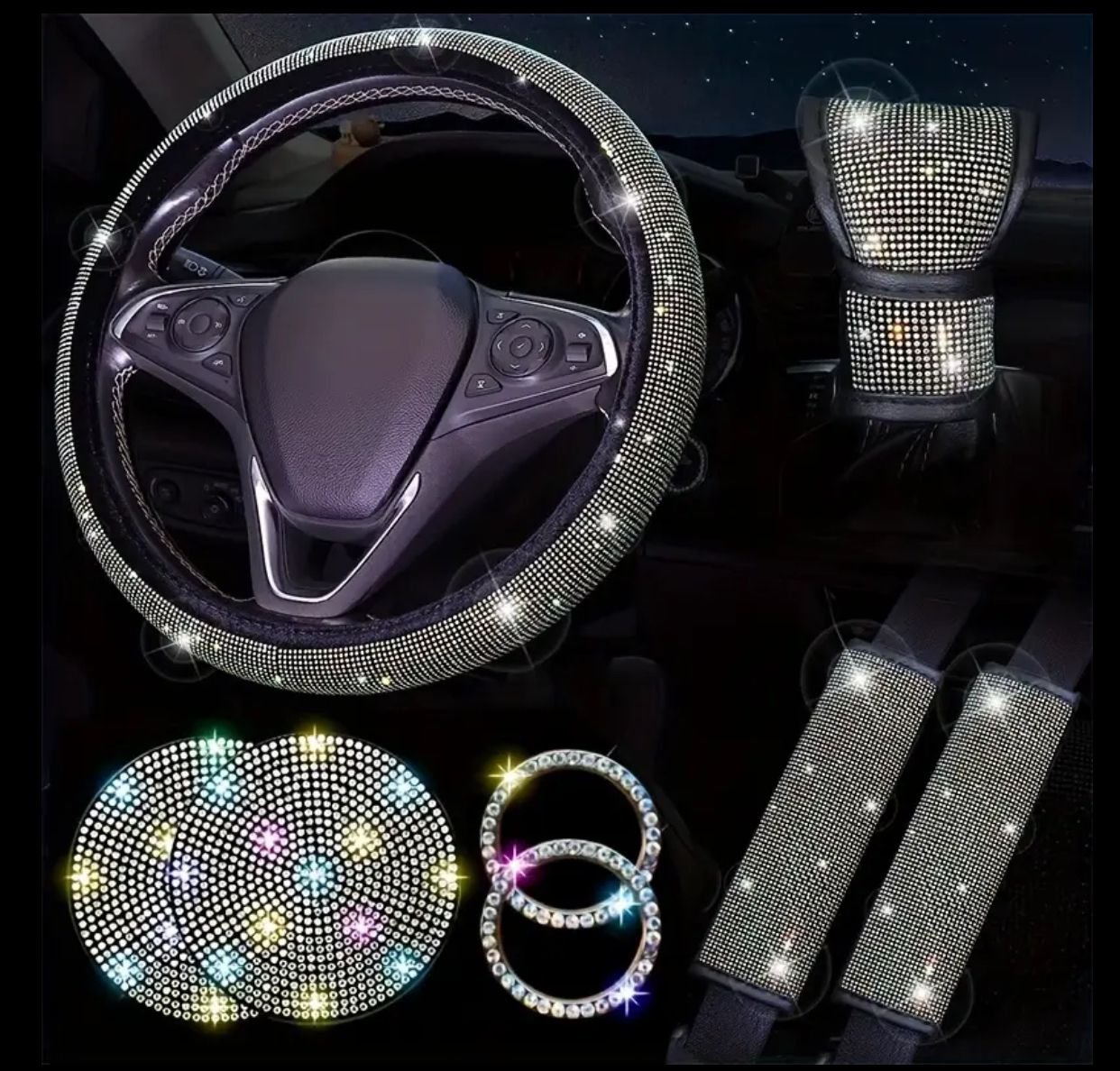 مجموعة 8 قطع من الديكور الداخلي للسيارة بتصميم الراين اللامع، إكسسوارات أنيقة لكل الفصول، زينة داخلية لسيارتك، لمسات براقة، تصميم رينستون يدوي الصنع، تشطيب عالي اللمعان، قطعة ديكورية