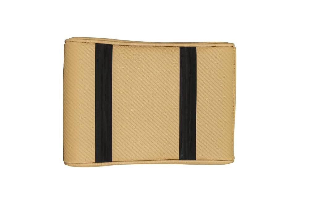 وسادة مسند ذراع جلد مبطنة للسيارة، وسادة كونسول وسطي من جلد صناعي مع ميموري فوم بتصميم مانع للانزلاق ومقاس عالمي للسيارات والدفع الرباعي والشاحنات (ألياف كربونية بيج)